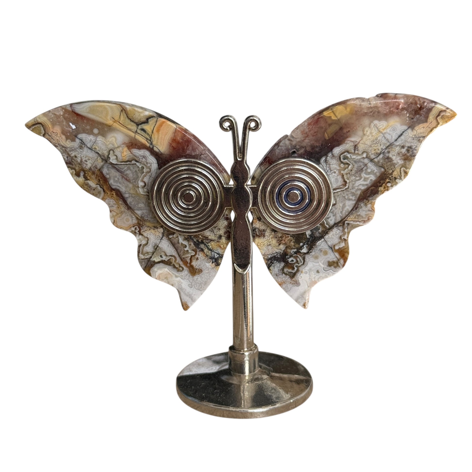 Crazy Lace Agate Butterfly on Stand – approx. 6 to 7 cm tall