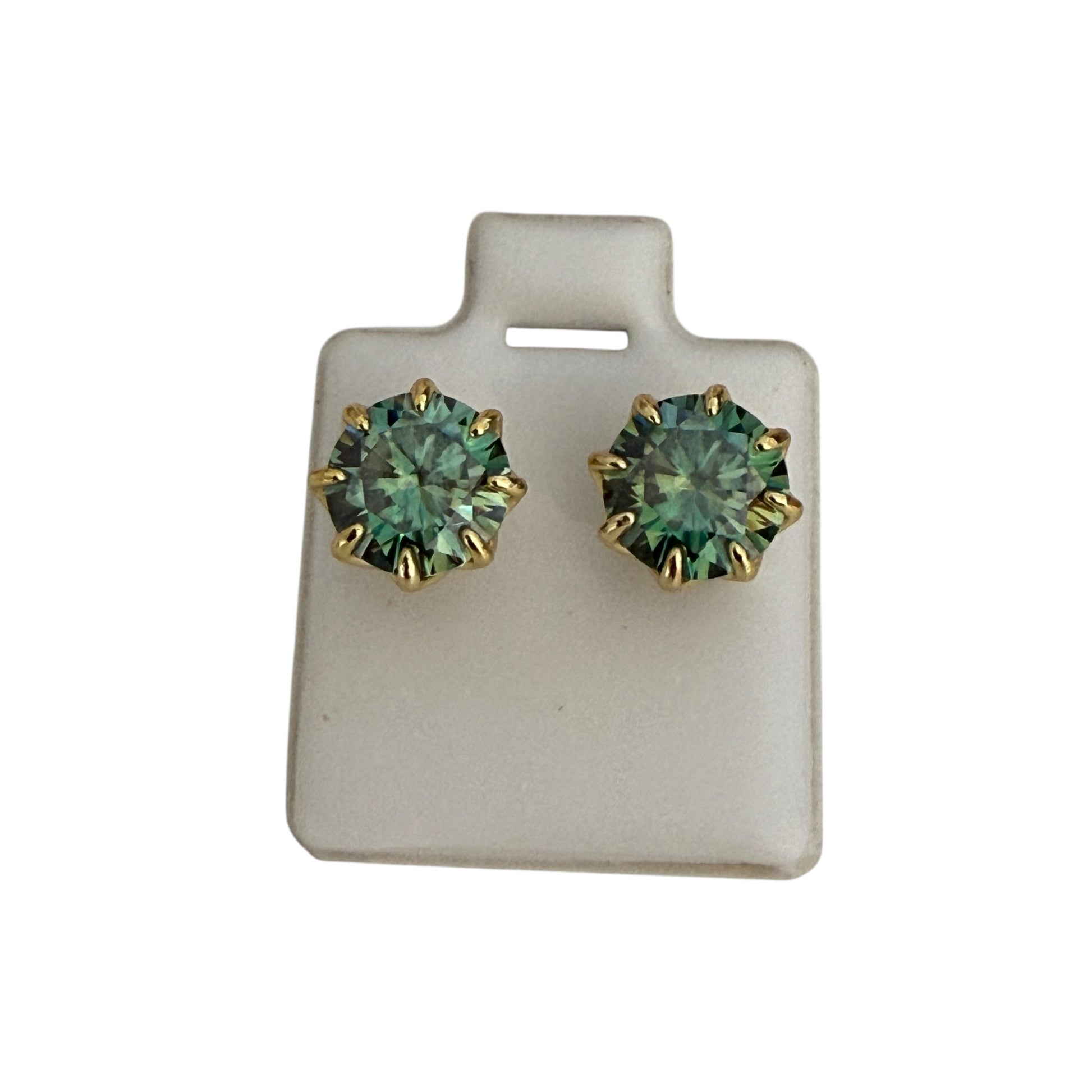 Green Moissanite Stud Earrings – 8 mm (2 ct each) – Yellow Gold Plated Sterling Silver