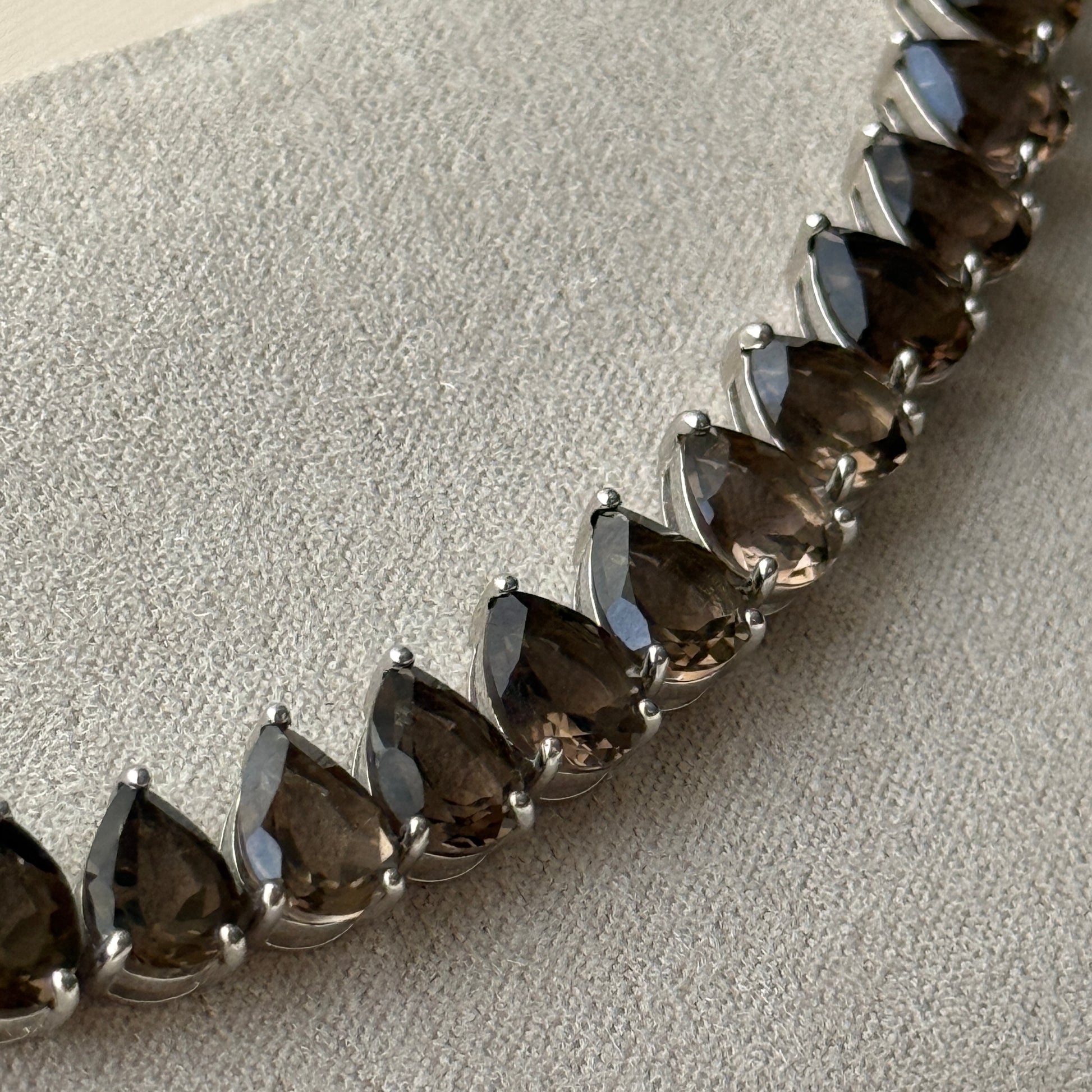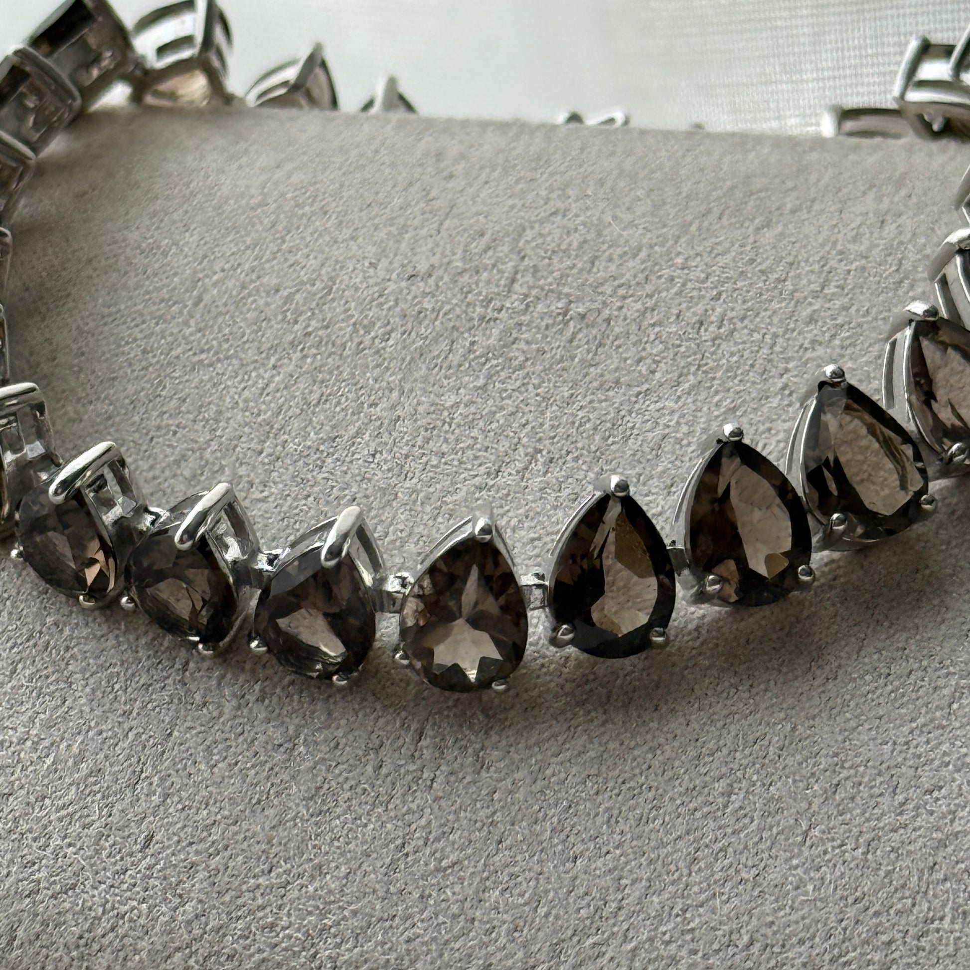 Smoky Quartz Teardrop-Cut Tennis Bracelet in Sterling Silver